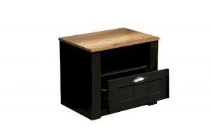 Небольшая тумбочка рядом с кроватью просто необходима! Открытая полка-ниша и выдвижной ящик – этого вполне хватает для размещения личных вещей. Нижний закрытый ящик плавно выдвигается вперед за счет шариковых направляющих.