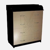 Вам понравится привлекательный внешний вид детского комода. На его лицевой части вы увидите углубленный декор в виде зайца с бантом.