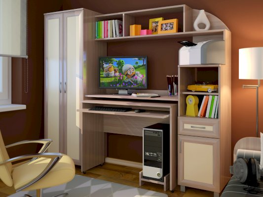 Комплектация выдвижная полка под клавиатуру / местодля принтера (техники) / надстройка / ниша под системный блок / тумбы