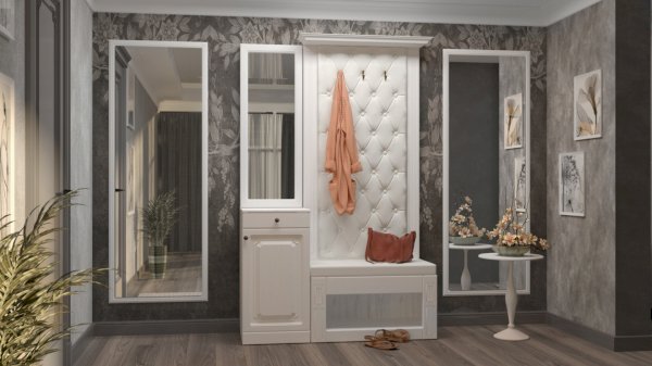 Наполнение: крючки для одежды + ниша для обуви + 2 распашных шкафа с полками + выдвижной ящик