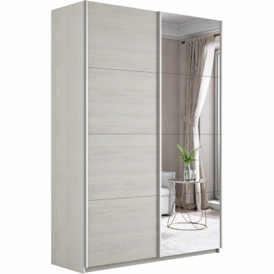 Шкаф-купе 2-х дверный Прайм ДСП/Зеркало 1400х2300х570 мм Белый снег