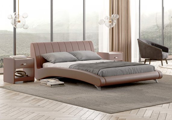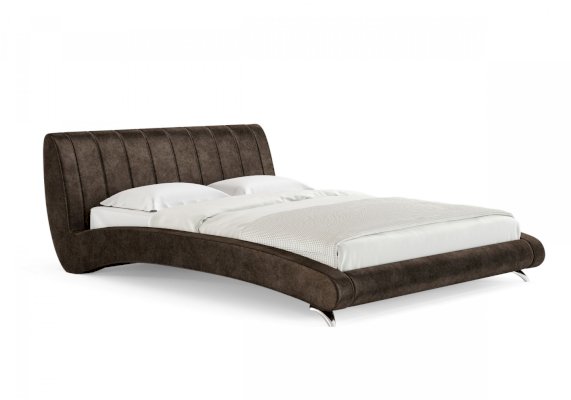 Элегантная интерьерная кровать. Модель изготовлена из ДСП. Обратная сторона изголовья обита спандбондом, но, при желании, её можно выполнить из основного обивочного материала. В комплект кровати входит кроватное основание. Каркас основания выполнен из металла, ламели - из берёзы.