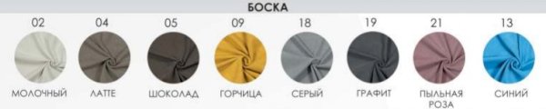 Обивка: Ткань (Велюр Боска), Ткань (Велюр Velutto), Ткань (Велюр Nova), Ткань (Велюр Grand)