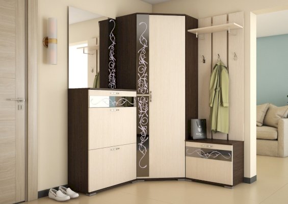 В тумбе 2 секции под обувь с полками, оборудованные газовыми кронштейнами и ящик на шариковых направляющих длиной 300 мм.
