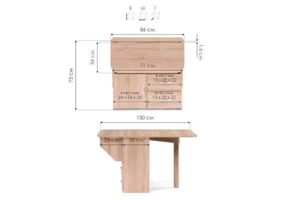 | Длина разложенного столика, мм | 1300 |