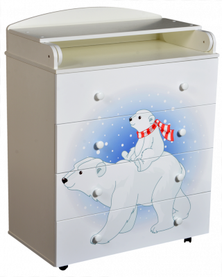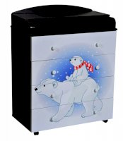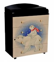 Венге/слоновая кость Пеленальный комод 800/4 Lilu 1 отличается привлекательным дизайном с использованием тематических детских принтов. В конструкции изделия предусмотрены 4 маленьких передвижных колеса, несколько вместительных ящичков на шариковых направляющих и откидывающаяся пеленальная столешница. Детский пеленальный комод, декорированный красочным рисунком, вмещает в себя постельные принадлежности, средства гигиены, распашонки, подгузники, игрушки, ползунки и другие личные вещи ребенка. Гладкая столешница идеально подходит для пеленания ребенка, а колесики позволяют быстро перемещать комод.