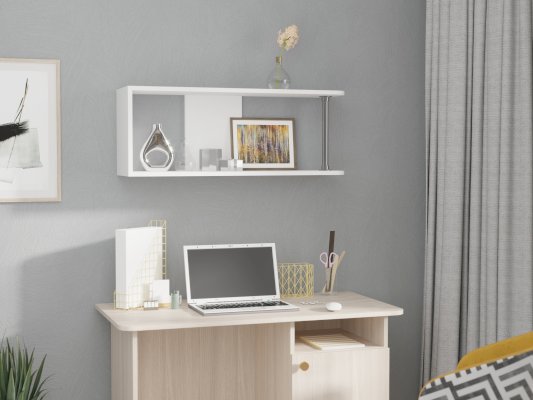 Полка прекрасно подходит для полноценной обстановки рабочего места, гостиной,  детской. Такую модель можно использовать для рабочих материалов и предметов декора, расширяя полезное пространство.